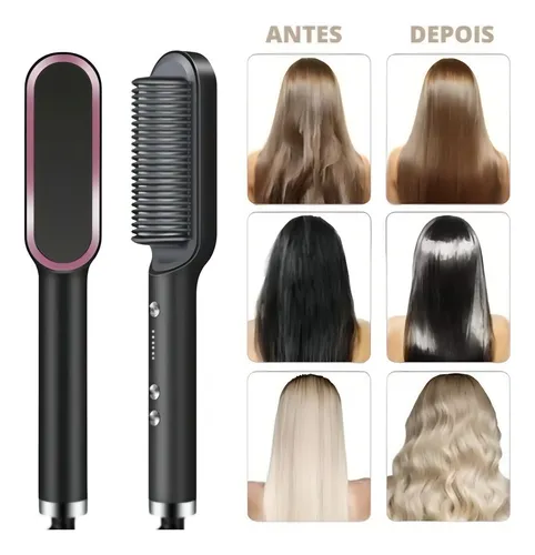 Transforme seu cabelo em minutos com a Escova Alisadora Inteligente! Com design